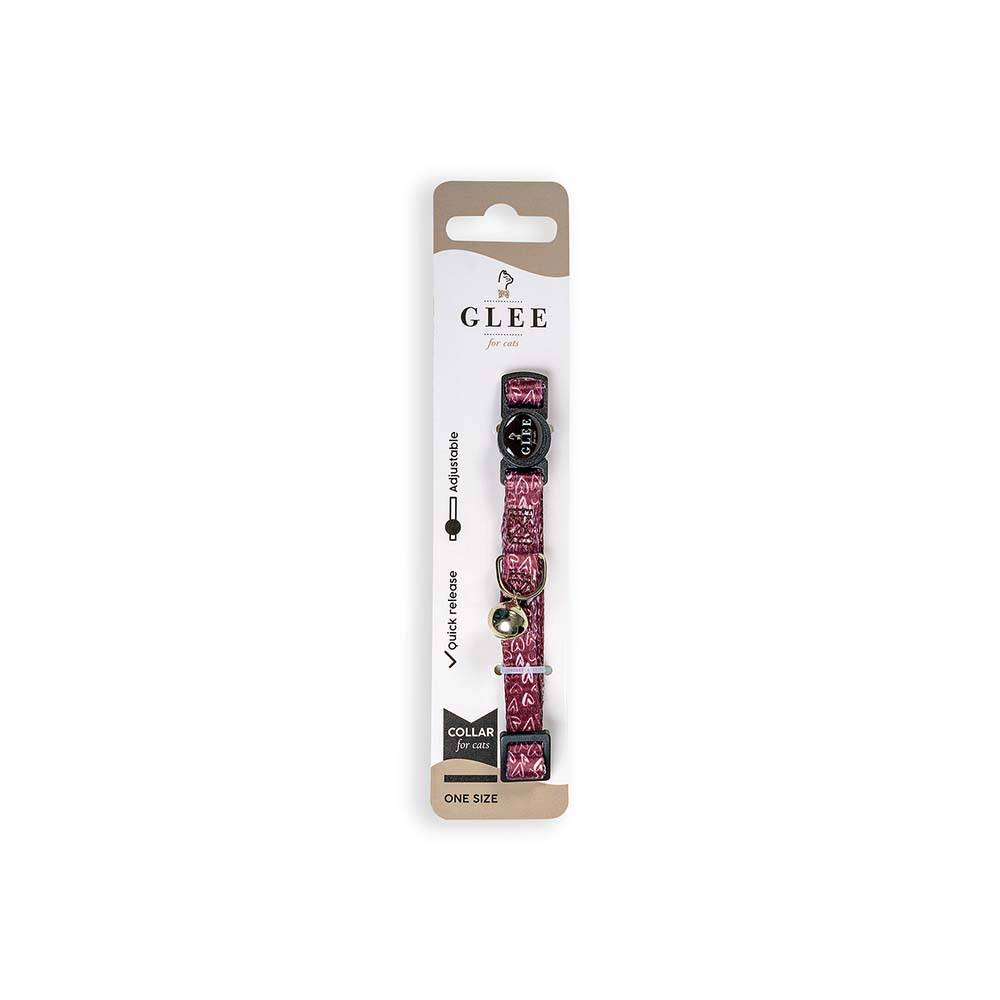 GLEE COLLARS WITH WEBBING TAPE, PLASTIC CLASP AND BELL, HEARTS 10mm x 30cm