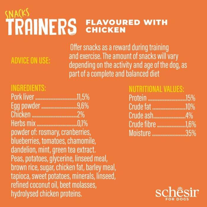 Schesir for Dogs Snacks – Trainers, Flavoured with Chicken. Only 3Kcal each. Free of Artificial Colours & Flavours.Made in the USA.